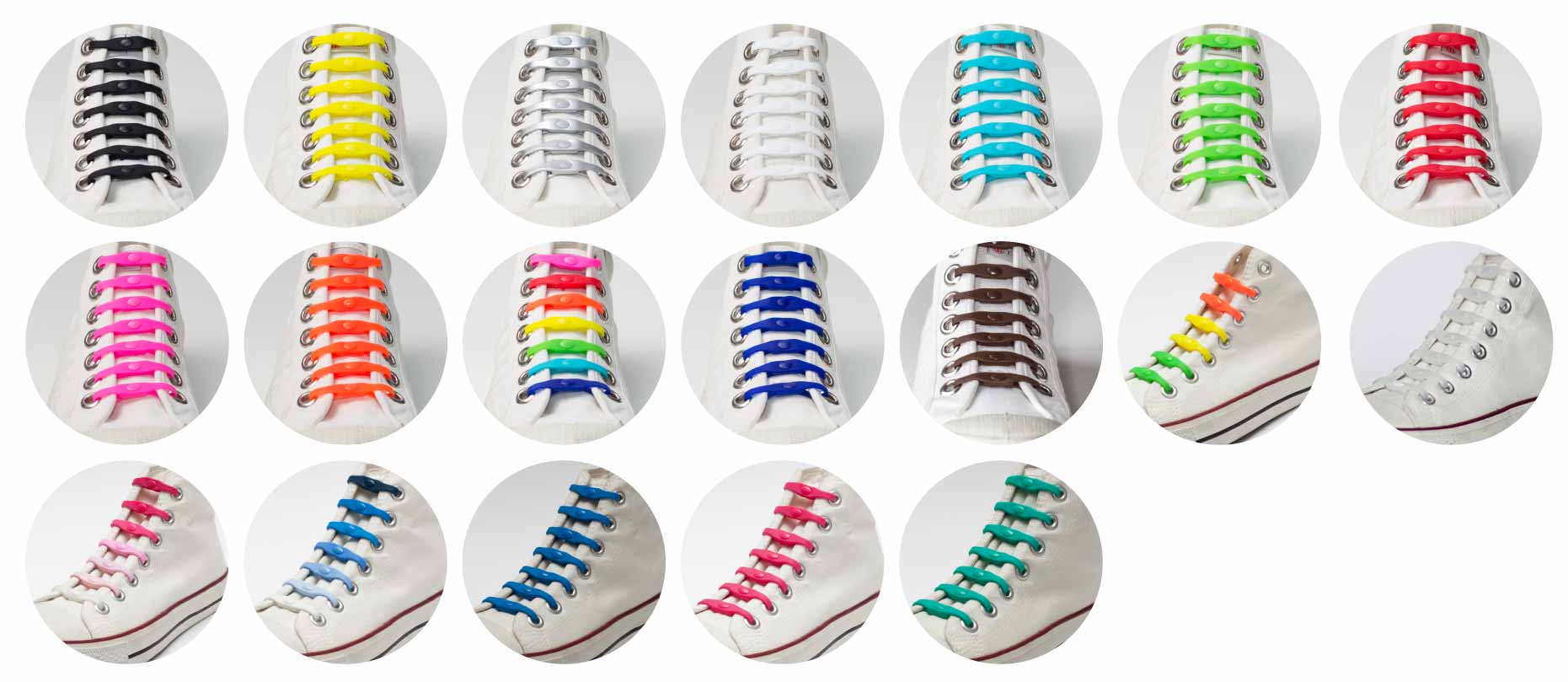 SHOEPSien laajasta värivalikoimasta löytyy vaihtoehtoja niin hillitympään kuin rohkeampaankin makuun: mustasta valkoiseen, perusväreistä sateenkaarinauhoihin.